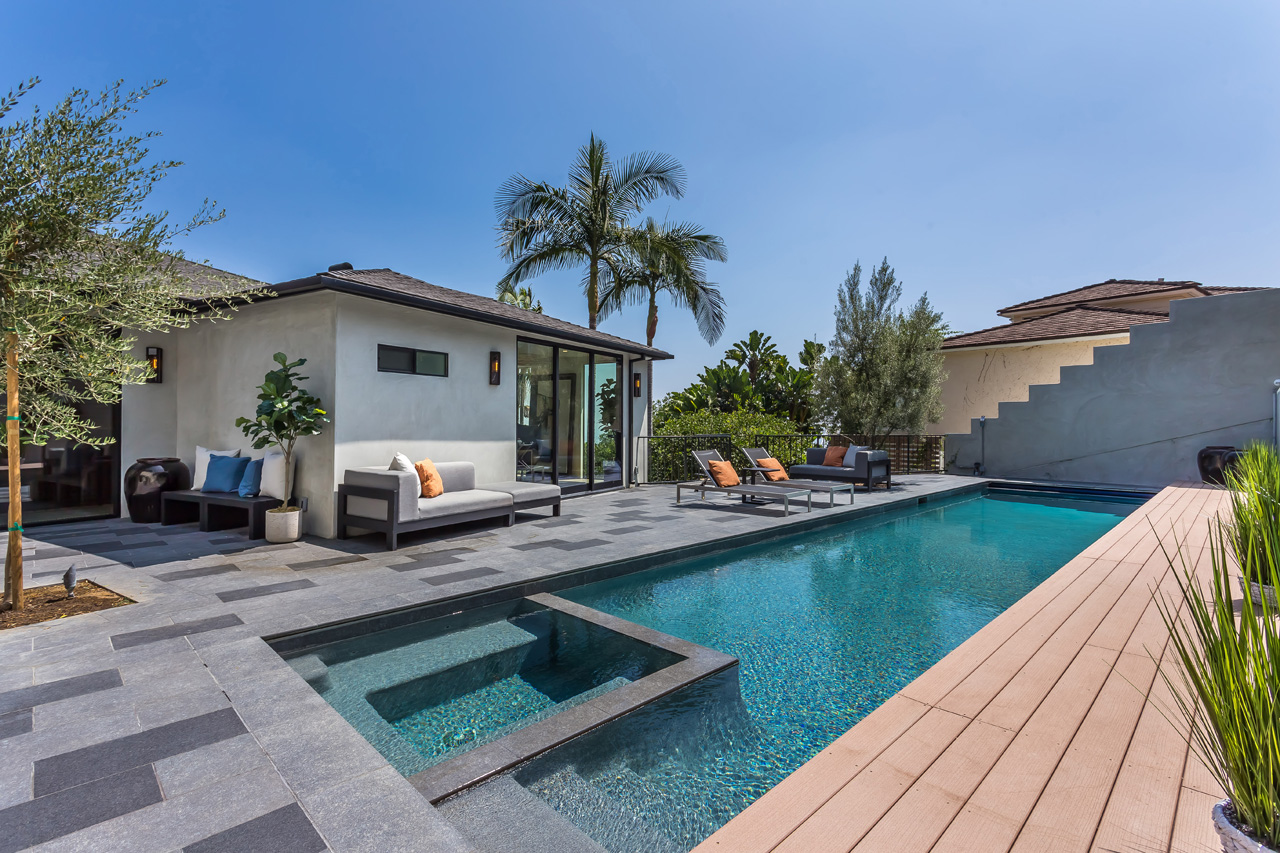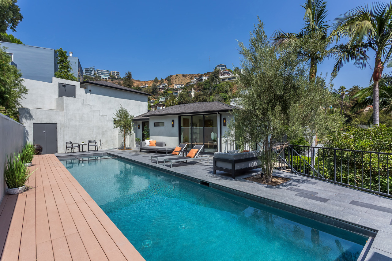 In highly coveted lower Sunset Plaza sits this privately gated and recently renovated compound close to some of LA's best shops and restaurants. No detail overlooked in this impeccably designed entertainer's paradise featuring an open floor plan, impressive city views, spacious flat yard with lush landscaping, swimmer's lap pool, outdoor fireplace and kitchen with built-in BBQ and Italian imported pizza oven, theater room and separate guest house.