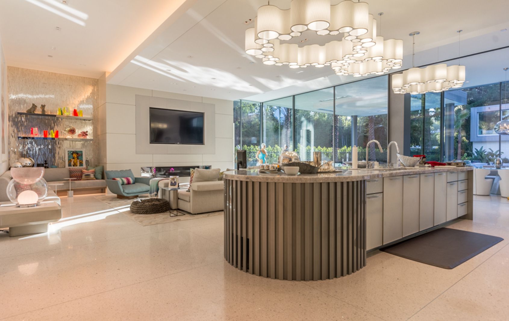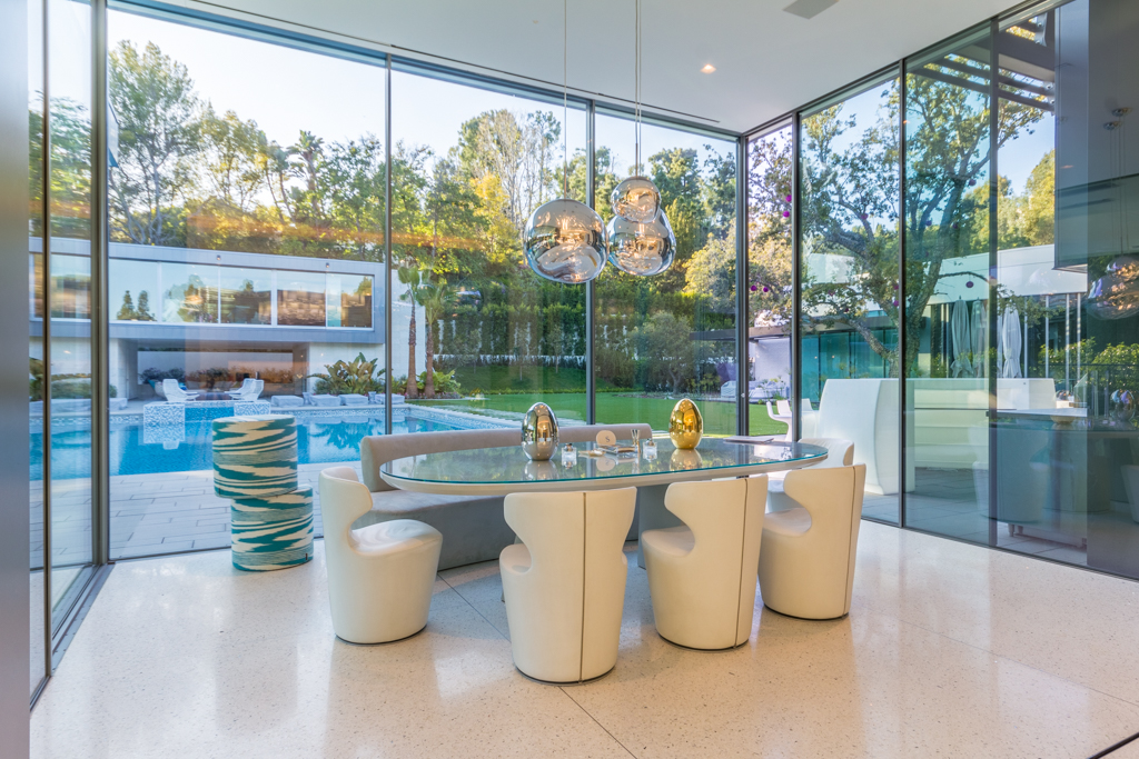 Nestled within the stunning rural countryside of Shadow Hills, this Full Interior Renovation was brought into the modern moment with state-of-the-art architectural design by William Hefner, brimming with elegance, innovation, and the latest in-home technology. Boasting all the luxurious must-haves, including a bespoke home movie theater, a Turkish Wet Sauna, and a sweeping open floor plan, this estate was elevated to new heights through meticulous construction and design. Re-envisioned to consider the natural backdrop, the brand new light-filled living room brings the outside in with floor to ceiling glass walls offering views of the property’s stunning acreage and outdoor entertainment area.